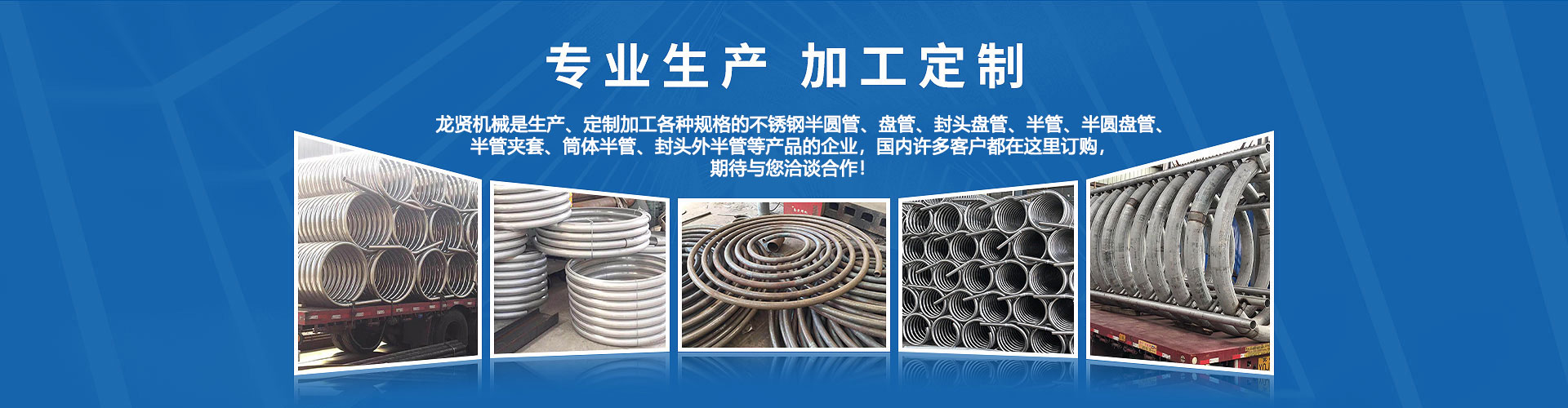 無(wú)錫龍賢機(jī)械制造有限公司生產(chǎn): 半管 半圓管 盤(pán)管 封頭盤(pán)管 外半管 半管夾套 封頭外半管 不銹鋼半圓管 304不銹鋼盤(pán)管等